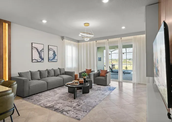 La villa 7 Bedrooms 55 Bathrooms Windsor Cay16200Sk propose des équipements indépendants, tels qu'une cuisine équipée, un coin repas pour le confort des clients. Il y a aussi une cafétière/théière électrique, de la vaisselle et un lave-vaisselle disponibles dans la cuisine. Vous trouverez Pizzano's Pizza & Grinderz dans une zone de 1 km. L'aéroport international d'Orlando est à 45 minutes de route de cette villa de 7 chambres.